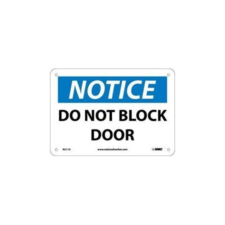 NMC N211P OSHA Sign, Legend "NOTICE - DO NOT BLOCK DOOR", 10" Length x 7" Height, Pressure Sensitive Vinyl, Black/Blue on White