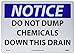 - Header "NOTICE" and Legend "DO NOT DUMP CHEMICALS DOWN THIS DRAIN"