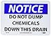 - Header "NOTICE" and Legend "DO NOT DUMP CHEMICALS DOWN THIS DRAIN"