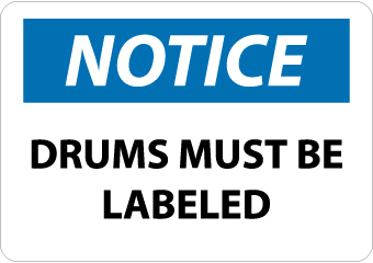 - Header "NOTICE" and Legend "DRUMS MUST BE LABELED"