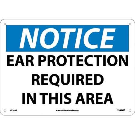 NMC N214AB NOTICE - EAR PROTECTION REQUIRED IN THIS AREA Sign – 14 in. x 10 in. Standard Aluminum Notice Signage with White/Black Text on Blue/White Base