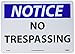- Visibility: the legend “NOTICE - NO TRESPASSING” is printed on the sign in clear, bold letters to ensure high visibility in all lighting conditions and even from a distance