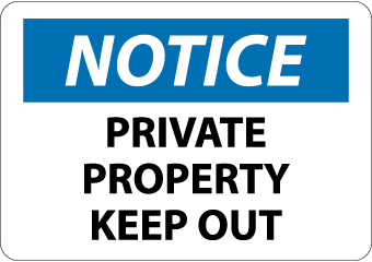 - Header "NOTICE" and Legend "PRIVATE PROPERTY KEEP OUT"