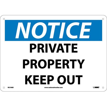 NMC N219AB OSHA Sign, Legend "NOTICE - PRIVATE PROPERTY KEEP OUT", 14" Length x 10" Height, Aluminum, Black/Blue on White