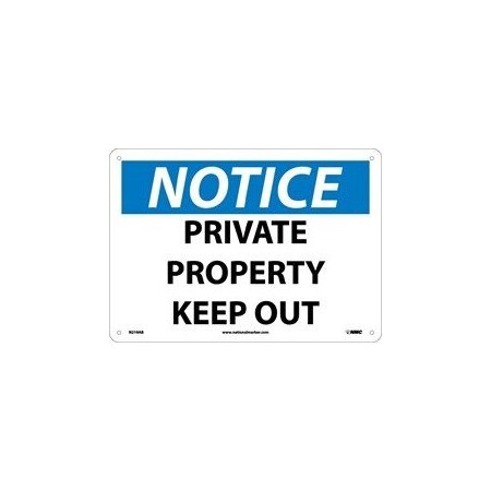 NMC N219PB OSHA Sign, Legend "NOTICE - PRIVATE PROPERTY KEEP OUT", 14" Length x 10" Height, Pressure Sensitive Vinyl, Black/Blue on White