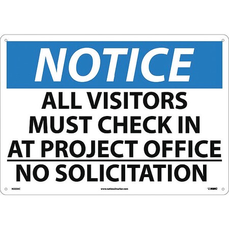 NMC N223AC NOTICE - ALL VISITORS MUST CHECK IN AT PROJECT OFFICE - NO SOLICITATION Sign - 20 in. x 14 in. - Aluminum Notice Signage