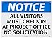 | Feature | Header "NOTICE" and Legend "ALL VISITORS MUST CHECK IN AT PROJECT OFFICE NO SOLICITATION" |