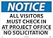 | Feature | Header "NOTICE" and Legend "ALL VISITORS MUST CHECK IN AT PROJECT OFFICE NO SOLICITATION" |