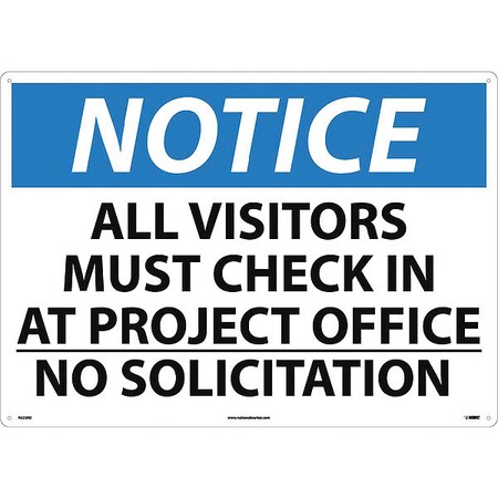 NMC N223RD NOTICE - ALL VISITORS MUST CHECK IN AT PROJECT OFFICE - NO SOLICITATION Sign - 28 in. x 20 in. – Rigid Plastic Notice Signage