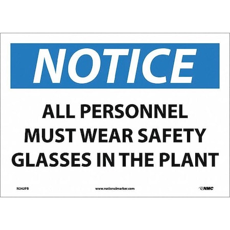NMC N242PB NOTICE - ALL PERSONNEL MUST WEAR SAFETY GLASSES IN THE PLANT Signage – 14 in. x 10 in. Vinyl Notice Sign with White/Black Text on Blue/Black Base