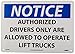 - Header "NOTICE" and Legend "AUTHORIZED DRIVERS ONLY ARE ALLOWED TO OPERATE LIFT TRUCKS"
