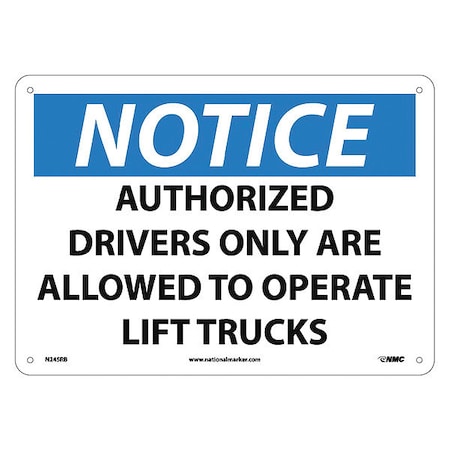 NMC N245RB OSHA Sign, Legend "NOTICE - AUTHORIZED DRIVERS ONLY ARE ALLOWED TO OPERATE LIFT TRUCKS", 14" Length x 10" Height, Rigid Plastic, Black/Blue on White