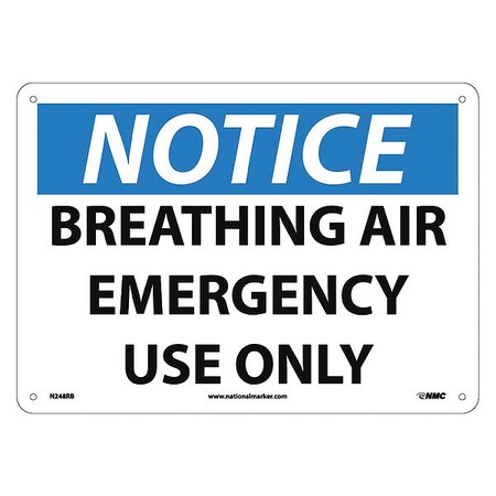 NMC N248RB OSHA Sign, Legend "NOTICE - BREATHING AIR EMERGENCY USE ONLY", 14" Length x 10" Height, Rigid Plastic, Black/Blue on White