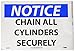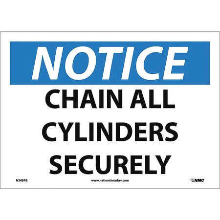 NMC N249PB OSHA Sign, Legend "NOTICE - CHAIN ALL CYLINDERS SECURELY", 14" Length x 10" Height, Pressure Sensitive Vinyl, Black/Blue on White