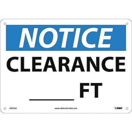 NMC N251AB OSHA Sign, Legend "NOTICE - CLEARANCE___FT", 14" Length x 10" Height, Aluminum, Black/Blue on White