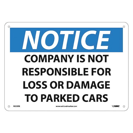NMC N253RB OSHA Sign, Legend "NOTICE - COMPANY IS NOT RESPONSIBLE FOR LOSS OR DAMAGE TO PARKED CARS", 14" Length x 10" Height, Rigid Plastic, Black/Blue on White