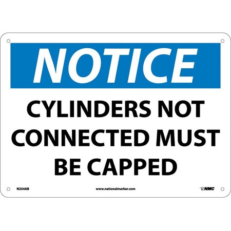 NMC N254AB OSHA Sign, Legend "NOTICE - CYLINDERS NOT CONNECTED MUST BE CAPPED", 14" Length x 10" Height, Aluminum, Black/Blue on White