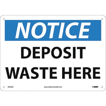 NMC N255AB OSHA Sign, Legend "NOTICE - DEPOSIT WASTE HERE", 14" Length x 10" Height, Aluminum, Black/Blue on White