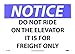 - Header "NOTICE" and Legend "DO NOT RIDE ON THE ELEVATOR IT IS FOR FREIGHT ONLY"
