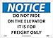 - Header "NOTICE" and Legend "DO NOT RIDE ON THE ELEVATOR IT IS FOR FREIGHT ONLY"