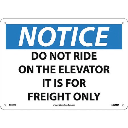 NMC N259RB OSHA Sign, Legend "NOTICE - DO NOT RIDE ON THE ELEVATOR IT IS FOR FREIGHT ONLY", 14" Length x 10" Height, Rigid Plastic, Black/Blue on White