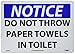 | Feature | Header "NOTICE" and Legend "DO NOT THROW PAPER TOWELS IN TOILET" |