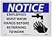 | Feature | Header "NOTICE" and Legend "EMPLOYEES MUST WASH HANDS BEFORE RETURNING TO WORK" with Graphic |