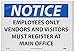 - Header "NOTICE" and Legend "EMPLOYEES ONLY VENDORS AND VISITORS MUST REGISTER AT MAIN OFFICE"