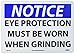 Notice Eye Protection Must Be Worn When Grinding Sign