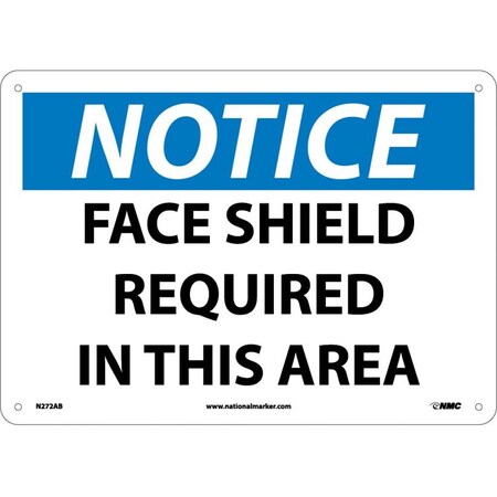 NMC N272AB NOTICE – FACE SHIELD REQUIRED IN THIS AREA – 14 in. x 10 in. Aluminum Notice Signage with Black/White Text on Blue/White Base