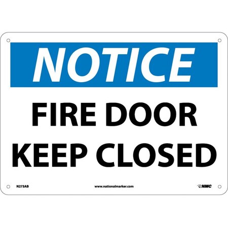NMC N273AB NOTICE FIRE DOOR - KEEP CLOSED Sign - 14 in. x 10 in. Standard Aluminum Notice Sign with White/Black Text on Blue/White Base