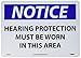 - Visibility: the legend “NOTICE - HEARING PROTECTION MUST BE WORN IN THIS AREA” is printed on the sign in clear, bold letters to ensure high visibility in all lighting conditions and even from a distance