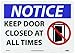 | Feature | Header "NOTICE" and Legend "KEEP DOOR CLOSED AT ALL TIMES" with Graphic |
