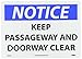 - Header "NOTICE" and Legend "KEEP PASSAGEWAY AND DOORWAY CLEAR"