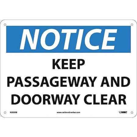 NMC N292RB OSHA Sign, Legend "NOTICE - KEEP PASSAGEWAY AND DOORWAY CLEAR", 14" Length x 10" Height, Rigid Plastic, Black/Blue on White