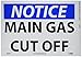 - High Visibility: to ensure clear visibility and easy readability, the OSHA compliant notice signage has the legend “NOTICE - MAIN GAS CUTOFF” printed in bold letters