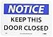 - Visibility: the legend “NOTICE - KEEP THIS DOOR CLOSED” is printed on the sign in clear, bold letters to ensure high visibility in all lighting conditions and even from a distance
