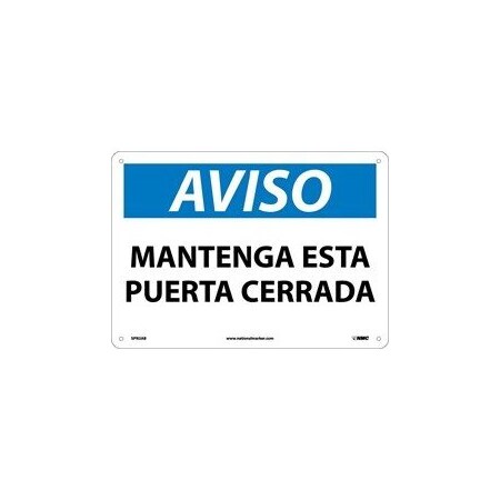 NMC N2P NOTICE - KEEP THIS DOOR CLOSED – 10 in. x 7 in. PS Vinyl Notice Sign with White/Black Text on Blue/White Base