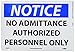 - Header "NOTICE" and Legend "NO ADMITTANCE AUTHORIZED PERSONNEL ONLY"