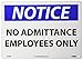 - Visible Composition: the no entry notice sign has legend “NOTICE - NO ADMITTANCE – EMPLOYEES ONLY” in legible letters which helps make it easy to read even from a distance