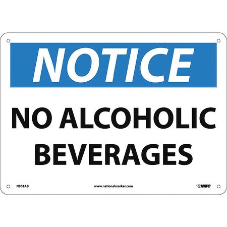 NMC N303AB OSHA Sign, Legend "NOTICE - NO ALCOHOLIC BEVERAGES", 14" Length x 10" Height, Aluminum, Black/Blue on White