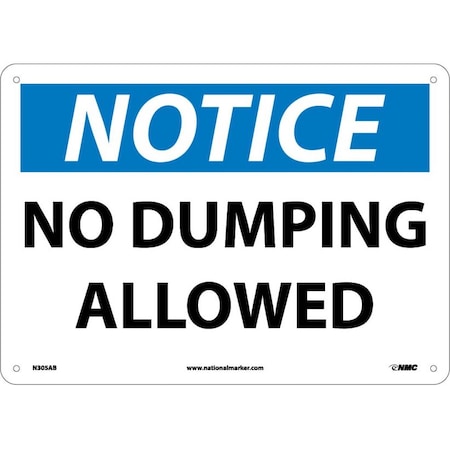 NMC N305AB OSHA Sign, Legend "NOTICE - NO DUMPING ALLOWED", 14" Length x 10" Height, Aluminum, Black/Blue on White