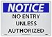 - Visible Design: the restricted entry notice sign has the legend “NOTICE - NO ENTRY UNLESS AUTHORIZED” printed in legible letters