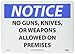 | Feature | Header "NOTICE" and Legend "NO GUNS, KNIVES OR WEAPONS ALLOWED ON PREMISES" |