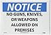 | Feature | Header "NOTICE" and Legend "NO GUNS, KNIVES OR WEAPONS ALLOWED ON PREMISES" |