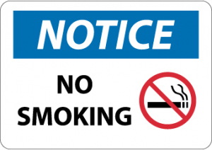 - High Visibility: the OSHA notice sign with legend “NOTICE - NO SMOKING” has a clear font with legible letters printed on it. The graphic with a circle and slash makes the sign easily visible in all lighting conditions