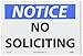 - Notice Signage: this sign boldly conveys the message for no soliciting in the marked areas. It can be placed in the space where soliciting can pose inconvenience or certain kind of threat It can also be placed in front of a private property