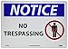 - Visibility: the trespassing notice signage has the legend “NOTICE - NO TRESPASSING” printed in legible font and also features a graphic with a person in a circle and a slash through it. The use of graphic makes the sign easy to understand