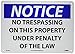 - Header "NOTICE" and Legend "NO TRESPASSING ON THIS PROPERTY UNDER PENALTY OF THE LAW"