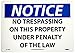 - Header "NOTICE" and Legend "NO TRESPASSING ON THIS PROPERTY UNDER PENALTY OF THE LAW"